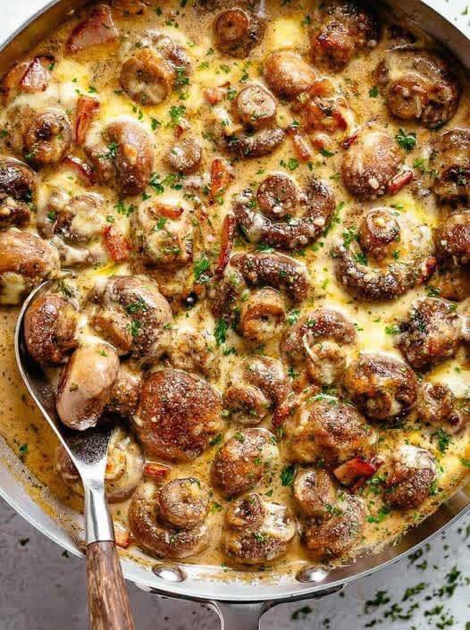Creamy garlic mushrooms and bacon