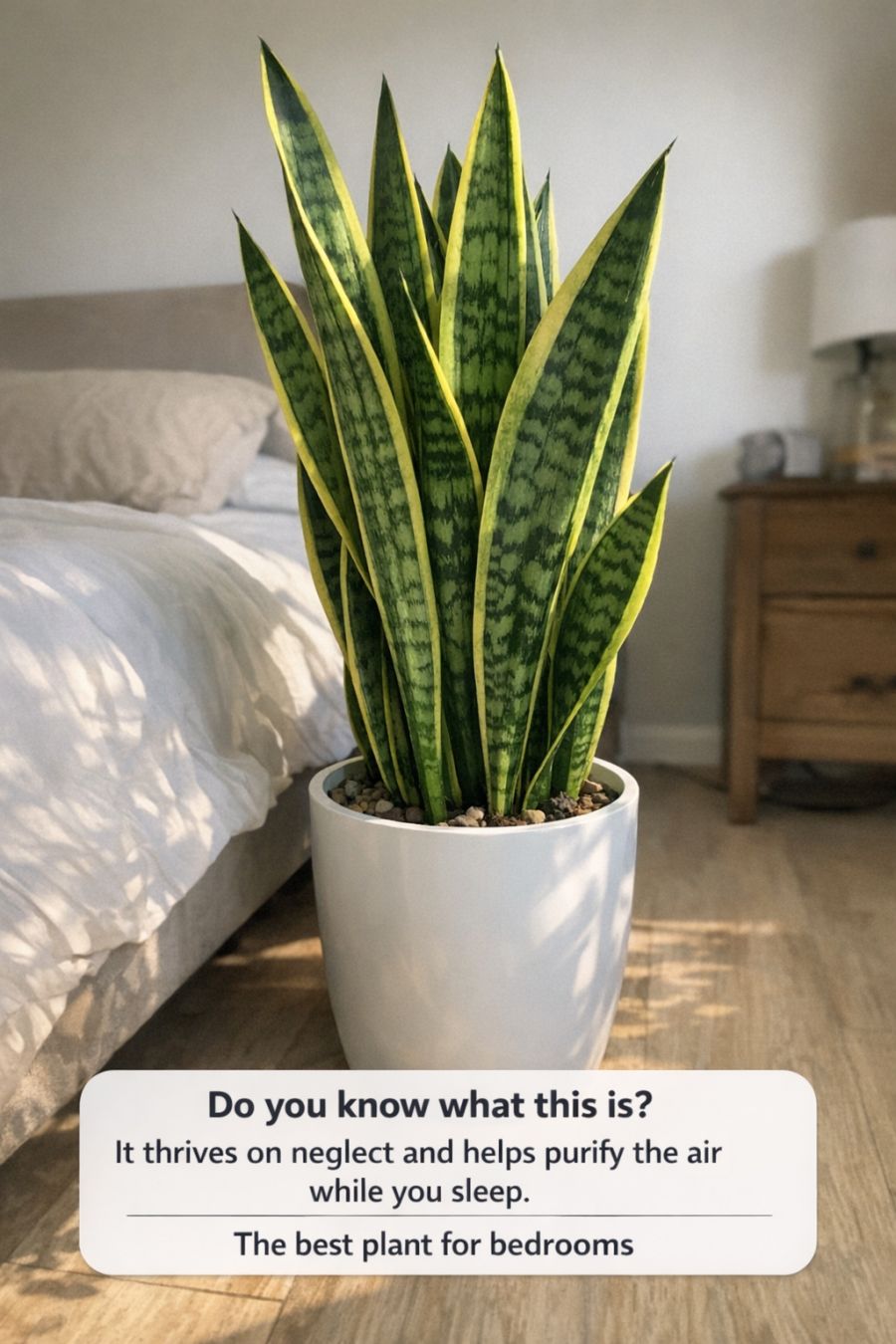 Do you know what this is? It thrives on neglect and helps purify the air while you sleep. The best plant for bedrooms