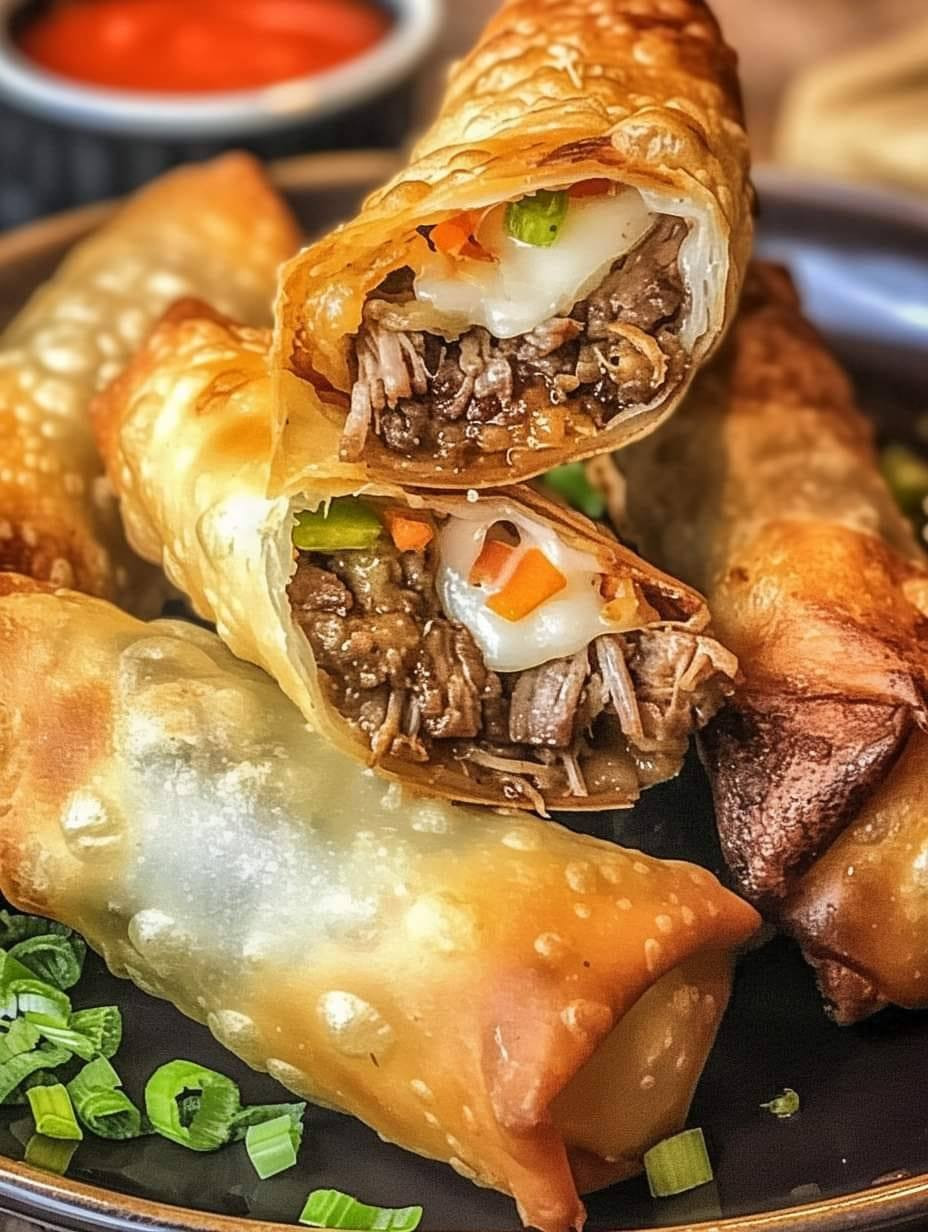🥟 Crispy, Cheesy Philly Cheesesteak Egg Rolls 🧀