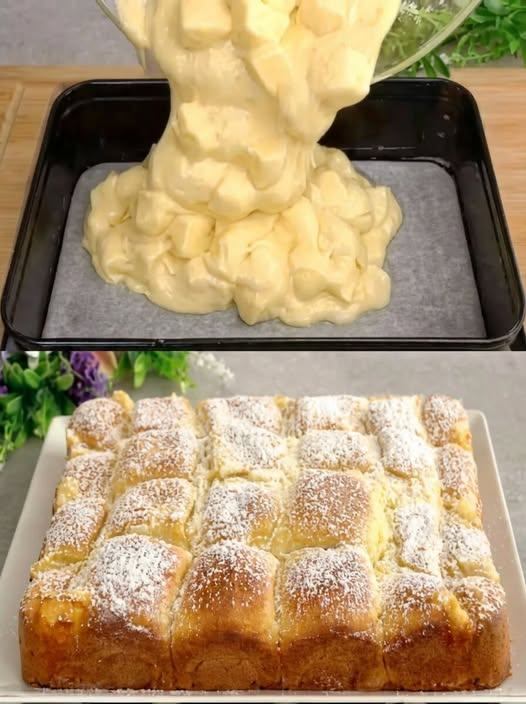 From the very first slice, you can tell it’s something special. The kitchen fills with the warm aroma of toasted almonds and vanilla, and cutting into the cake reveals a soft, custard-like center—dense, rich, and deeply satisfying.