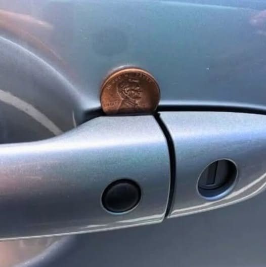 Car thieves don’t always operate in a hurry. Some take their time and observe their target before making a move. If a thief places a penny in your door handle and watches from a distance, they may be waiting for the perfect moment to strike.
